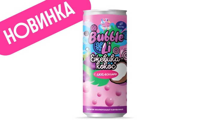 Газированный азиатский лимонад со вкусом ежевики и кокоса с лопающимися пузырьками-джусболлами в яркой баночке