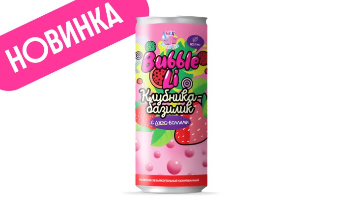 Газированный азиатский лимонад со вкусом клубники и базилика с лопающимися пузырьками-джусболлами в яркой баночке