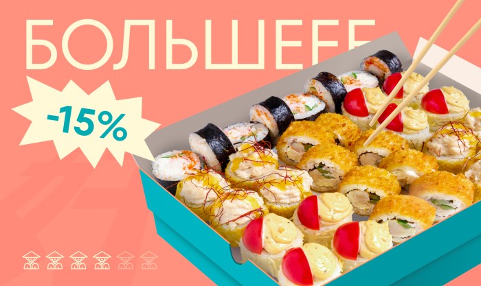 32 шт. Ролл Цезарь, ролл Эби Темпура, ролл Гавайский в соусе ананас-чили, ролл Снежный краб в икре масаго