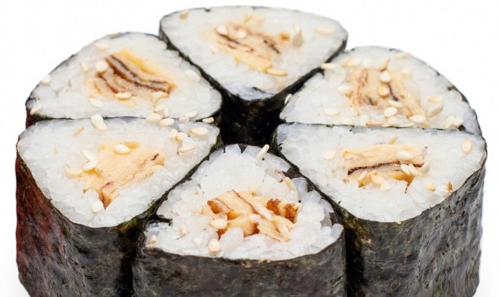 Японский омлет, соус Унаги, кунжут, рис, нори